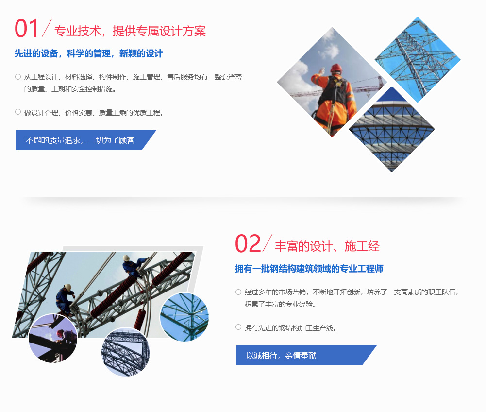 我公司是專業生產電力線路桿塔、變電站構架、電廠綜合支架、通訊塔、微波塔、避雷塔、交通標識桿風力發電塔及其它鋼結構產品的規模化經營企業。